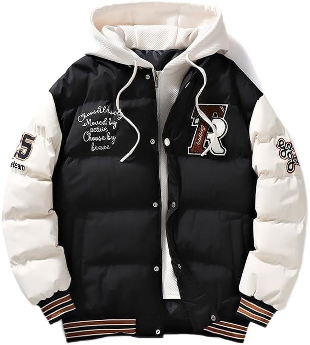 - المزايا: سترة قطنية سميكة، سترة بسحاب سفلي، سترة بغطاء للرأس برباط، قطعتين مزيفتين، جيوب قطرية، مريحة لك لوضع يديك في الجيوب، تطريز الحروف.