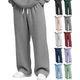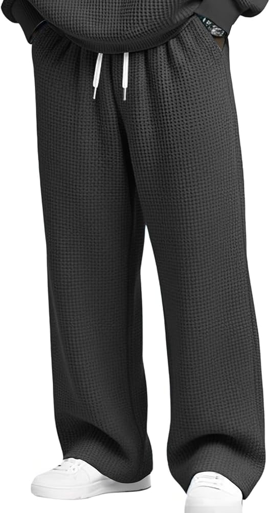 ✅ 〖Waffle Baggy Pants Men Lounge Travel Lightweight Knit Pajama Pant Relaxed Fit Open Bottom Classic Regular Cotton Sweatpants〗✅ 💕