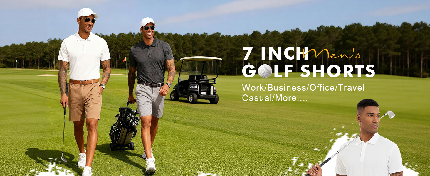 شورت جولف Lzzidou رجالي مقاس 7 بوصات، قابل للتمدد خفيف الوزن وسريع الجفاف، شورت كاجوال مع جيوب للعمل والعمل in Kuwait