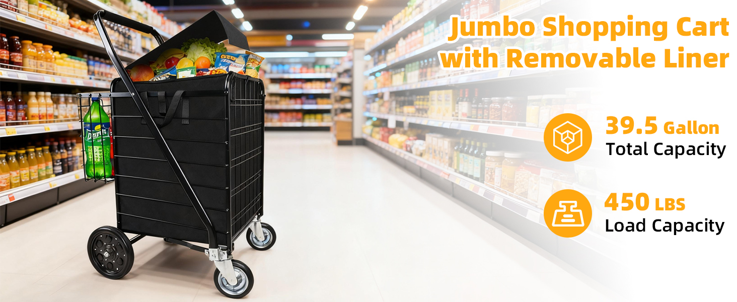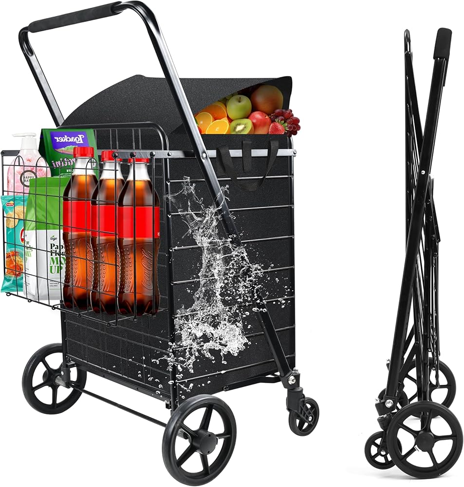 عربة تسوق قابلة للطي شديدة التحمل بوزن 450 رطلًا مع سلال مزدوجة - سعة 39.5 جالون، وعجلات لجميع التضاريس وبطانة مقاومة للماء | عربة المرافق التجارية للبقالة والمستودعات والسفر in Kuwait