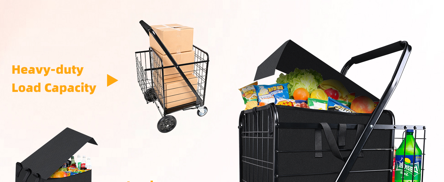 • منظمة + بطانة مقاومة للماء: سلة أمامية ضخمة بسعة 32.5 جالون (مع بطانة أكسفورد 600D قابلة للإزالة) تنقل السوائل أو الثلج أو العناصر الهشة بشكل آمن. جيب خلفي بسعة 7 جالون يحمل أدوات أصغر أو حقائب شخصية. مثالية لأسواق المزارعين أو رحلات الشاطئ أو الغسيل