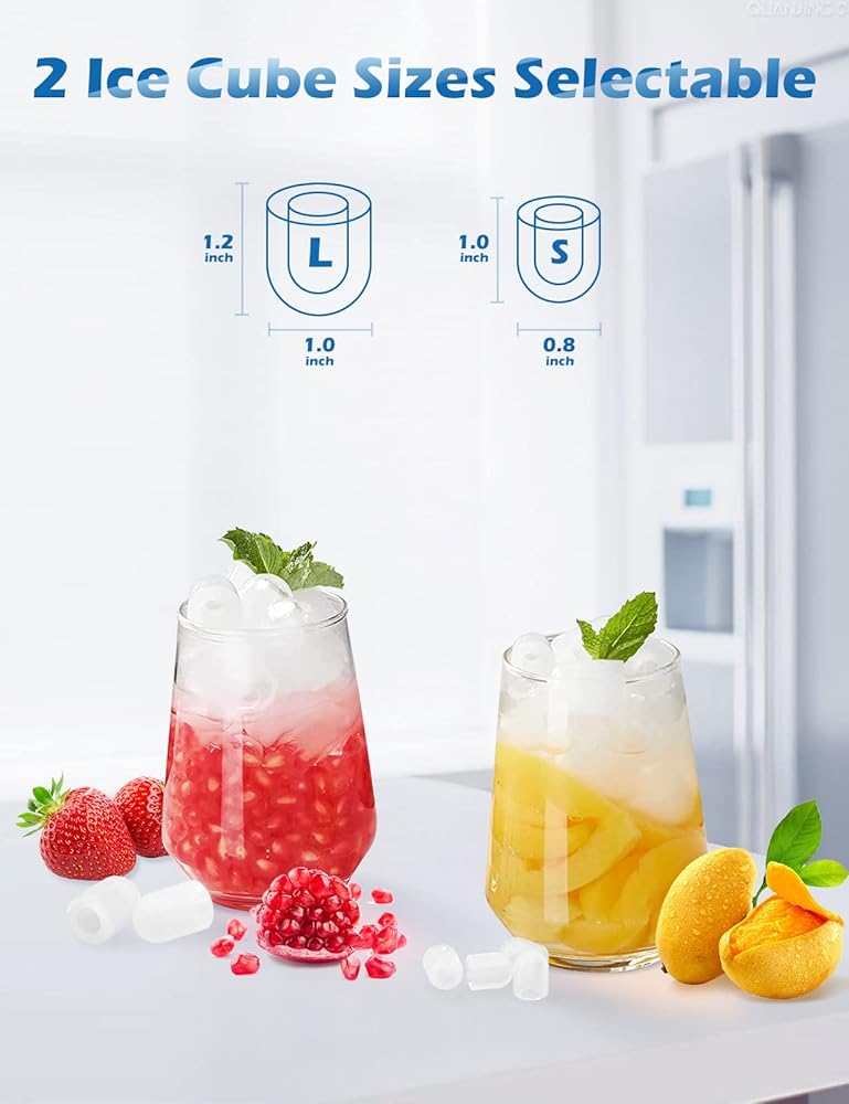 【إنتاج يومي للثلج بوزن 33 رطلاً】صانعة ثلج على سطح الطاولة مع 33 رطلاً من الثلج يوميًا لتلبية احتياجاتك اليومية. يمكن لسلة الثلج تخزين ما يصل إلى 3.3 رطل/120 قطعة من الثلج في المرة الواحدة. إذا كان كوب القهوة يحتاج إلى 5-10 مكعبات ثلج، فإن ماكينة صنع الثلج المزودة بخزان مياه سعة 2.8 لتر يمكنها تلبية 185-370 كوبًا يوميًا.