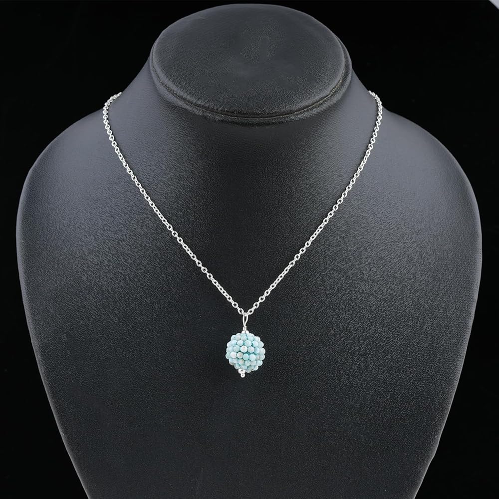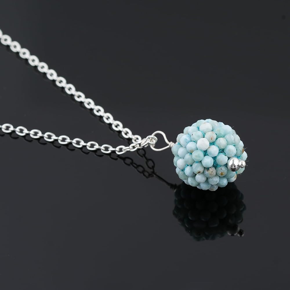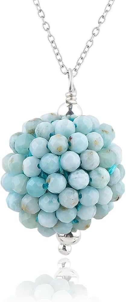 ColouredRocks LARIMAR الأحجار الكريمة الخرز العصرية قلادة قلادة، ارتداء اليومي النساء المجوهرات، عيد ميلاد، هدية الذكرى السنوية للأم، أمي، زوجة، ابنة، صديقة، النحاس المطلي بالفضة 18 بوصة