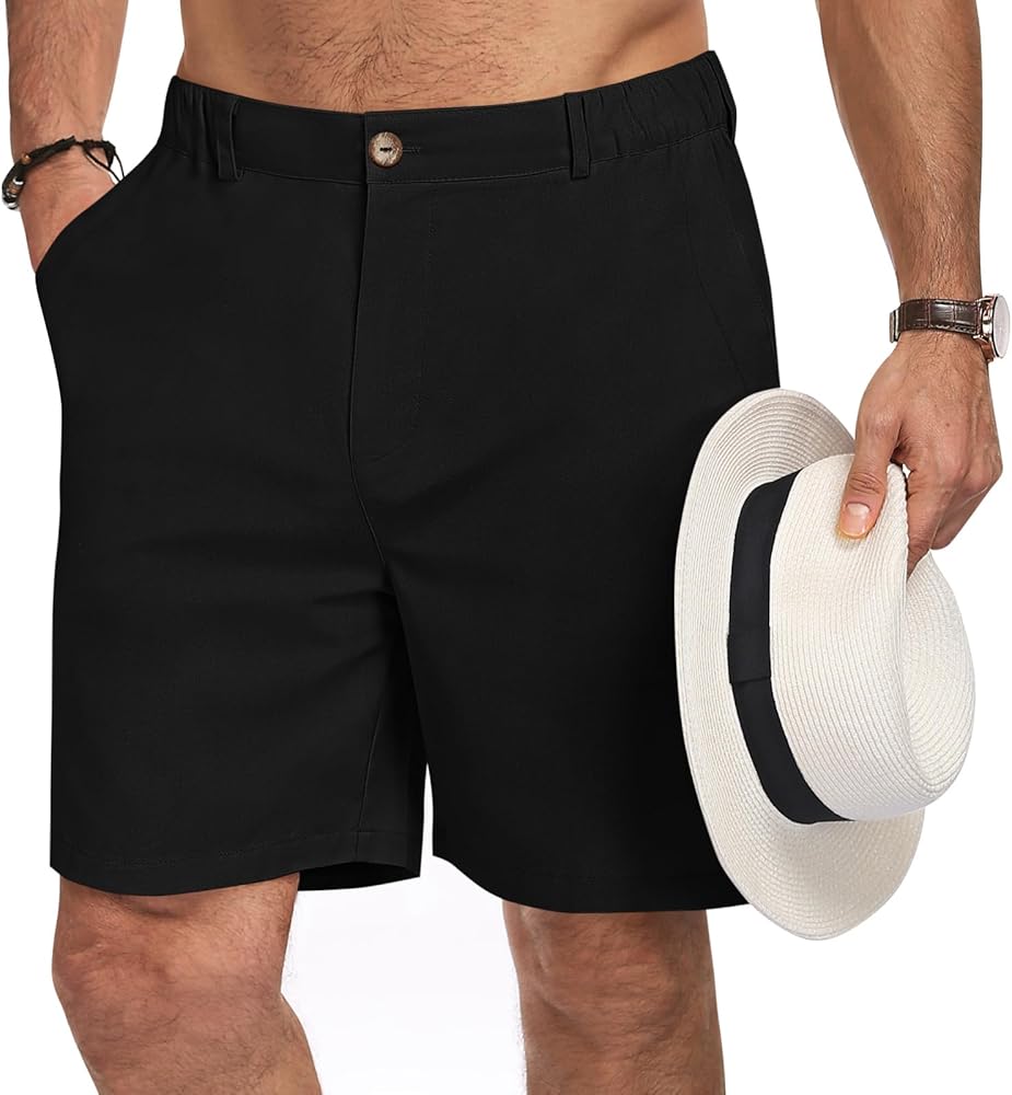 【مناسبات متعددة】 شورت رجالي من الكتان بخصر مطاطي، مثالي للارتداء اليومي والشاطئ والجولف وصيد الأسماك والحفلات والعطلات وغيرها من الأنشطة غير الرسمية. ستصبح القطعة الأكثر ارتداؤها في خزانة ملابسك!