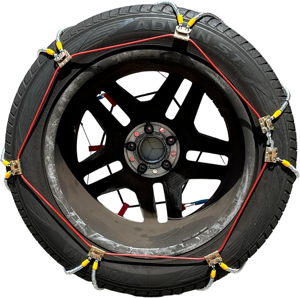 The diagonal cross chains on these tire chains deliver consistent traction and durability, enabling reliable grip on slippery surfaces. This feature is particularly crucial in emergency situations where every second counts.