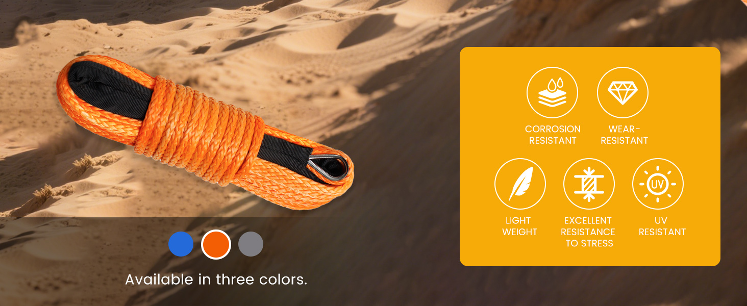 التعامل السهل والآمن: على عكس الكابلات الفولاذية، لن ينكسر هذا الحبل الصناعي الناعم بشكل خطير عند الكسر؛ فهي تطفو على الماء وآمنة عند التعامل معها بدون قفازات، مما يجعل سحب سيارتك أو التعافي على الطرق الوعرة أكثر أمانًا