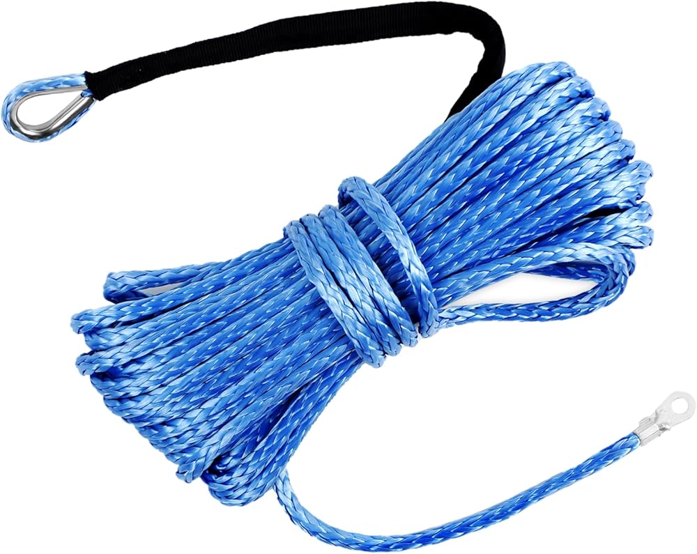 RIOOP حبل ونش صناعي عالي التحمل 1/4 بوصة × 50 قدم 9,500 رطل، خط حبل سحب للانتعاش لشاحنة ATV UTV، خط كابل ونش جيب مع كم واقي لتمديد سحب السيارة على الطرق الوعرة (أزرق)