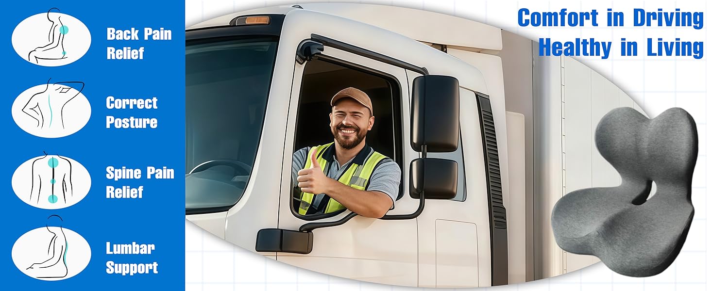 【حل هدية مدروس】هل تبحث عن هدية ذات معنى لشخص يعاني من آلام الظهر أو عرق النسا؟ إنها وسادة مقعد الشاحنة وهي طريقة رائعة لإظهار اهتمامك بشكل مثالي للمحترفين والسائقين والمستخدمين المسنين أو أي شخص يبحث عن راحة جلوس أفضل. خفيفة الوزن ومحمولة للاستخدام متعدد الاستخدامات في أي مكان.