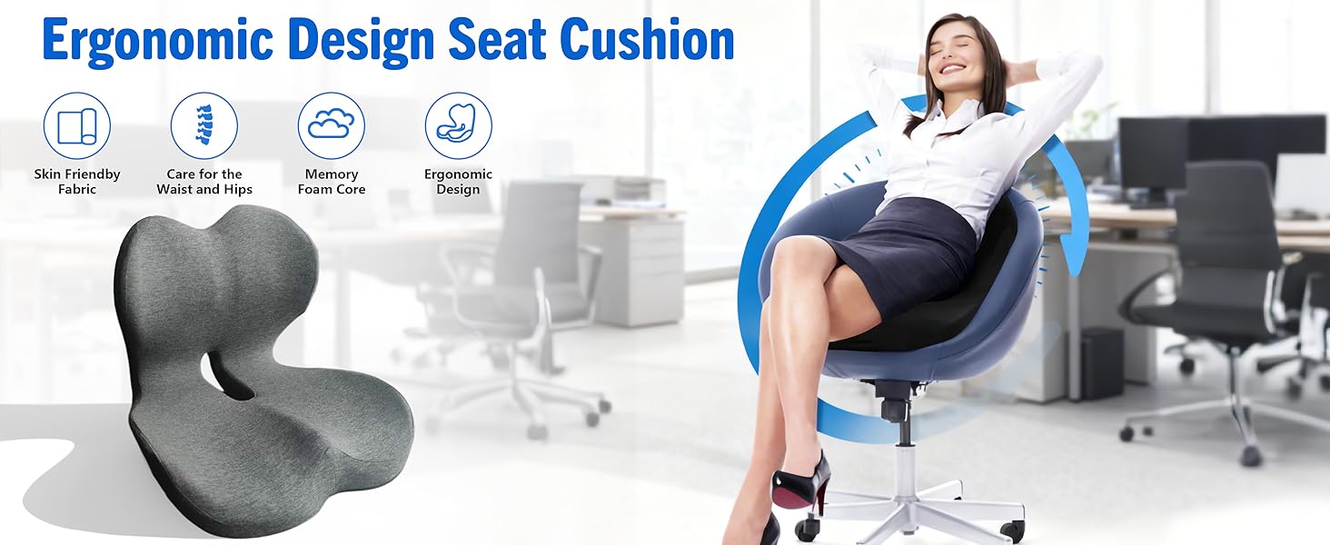 【على عكس الوسائد القياسية】تتضمن وسادة كرسي المكتب هذه وسادة قطنية سميكة لدعم الظهر بشكل استثنائي. توفر الحواف الجانبية المرتفعة دعمًا لطيفًا للساق، وتتكيف مع شكل جسمك لراحة الجسم بالكامل، مما يقلل من عدم الراحة والتعب سواء أثناء العمل أو أثناء القيادة الطويلة.