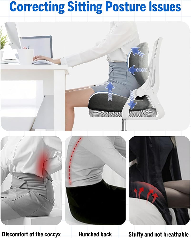 وسادة مقعد مطورة من إسفنج الذاكرة المريح، وسادة دعم أسفل الظهر لكرسي المكتب، وسادة مقعد السيارة من إسفنج الذاكرة مع تصميم مريح على شكل حرف L للسيارة والشاحنة والمكتب والكراسي ومقعد المكتب