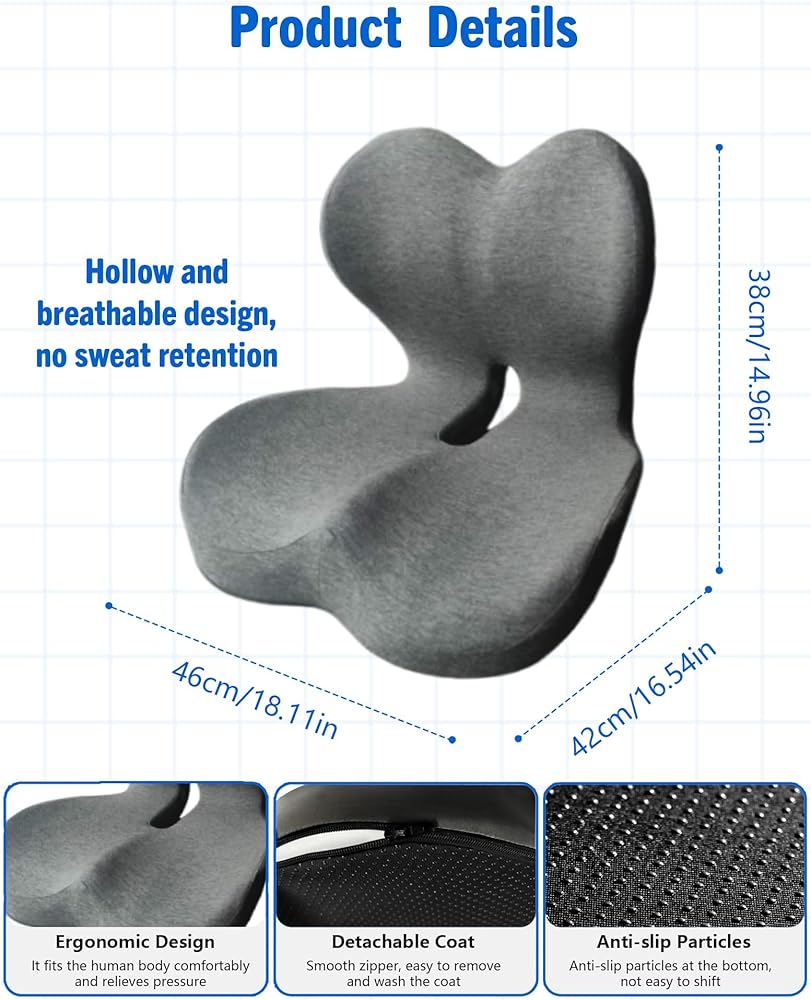 مواد فاخرة: تحافظ الرغوة عالية الكثافة على شكلها من خلال الاستخدام اليومي، بينما يمنع الجزء السفلي ذو المقبض على شكل قرص العسل الانزلاق على أي سطح مقعد. غطاء قابل للإزالة يمكن غسله في الغسالة من أجل صيانة خالية من المتاعب. تم تصميمه بطبقات معززة لتحمل الضغط المتكرر، والحفاظ على دعم ثابت سنة بعد سنة.