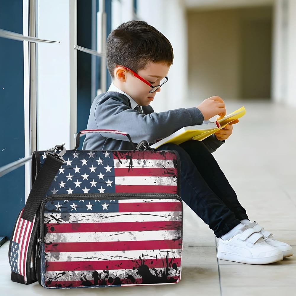 حافظة بسحاب مقاوم للماء مع حزام كتف، حافظة صياد ثلاثية الحلقات بتصميم مسطح ومقصورات متعددة للمدرسة والمكتب والبالغين والأطفال
