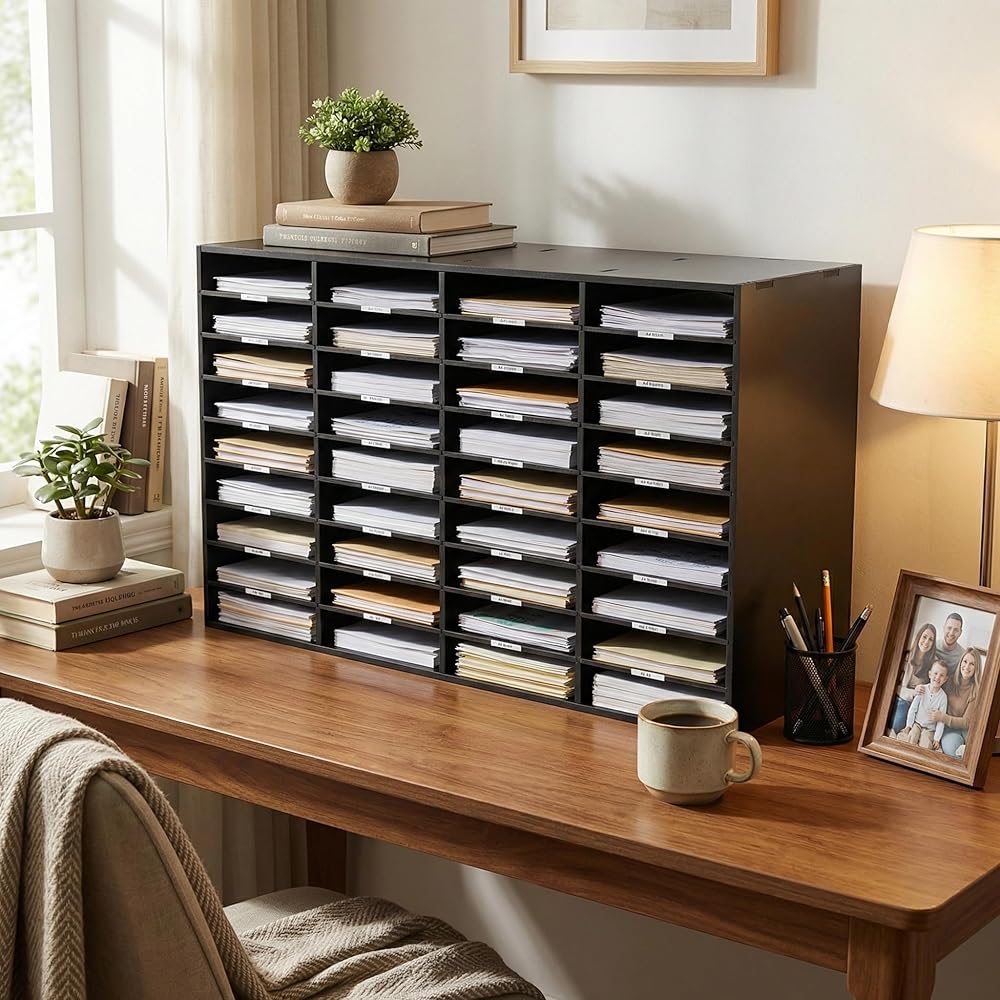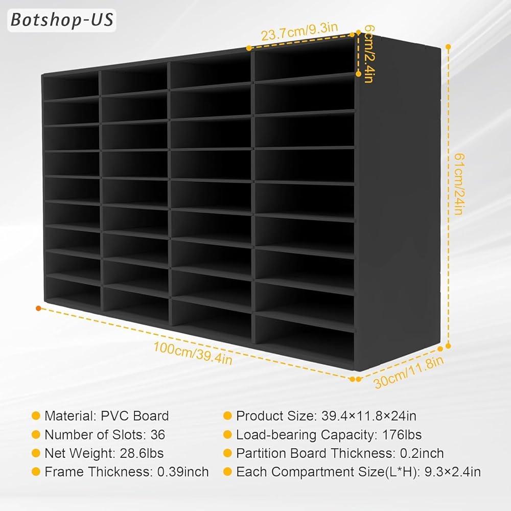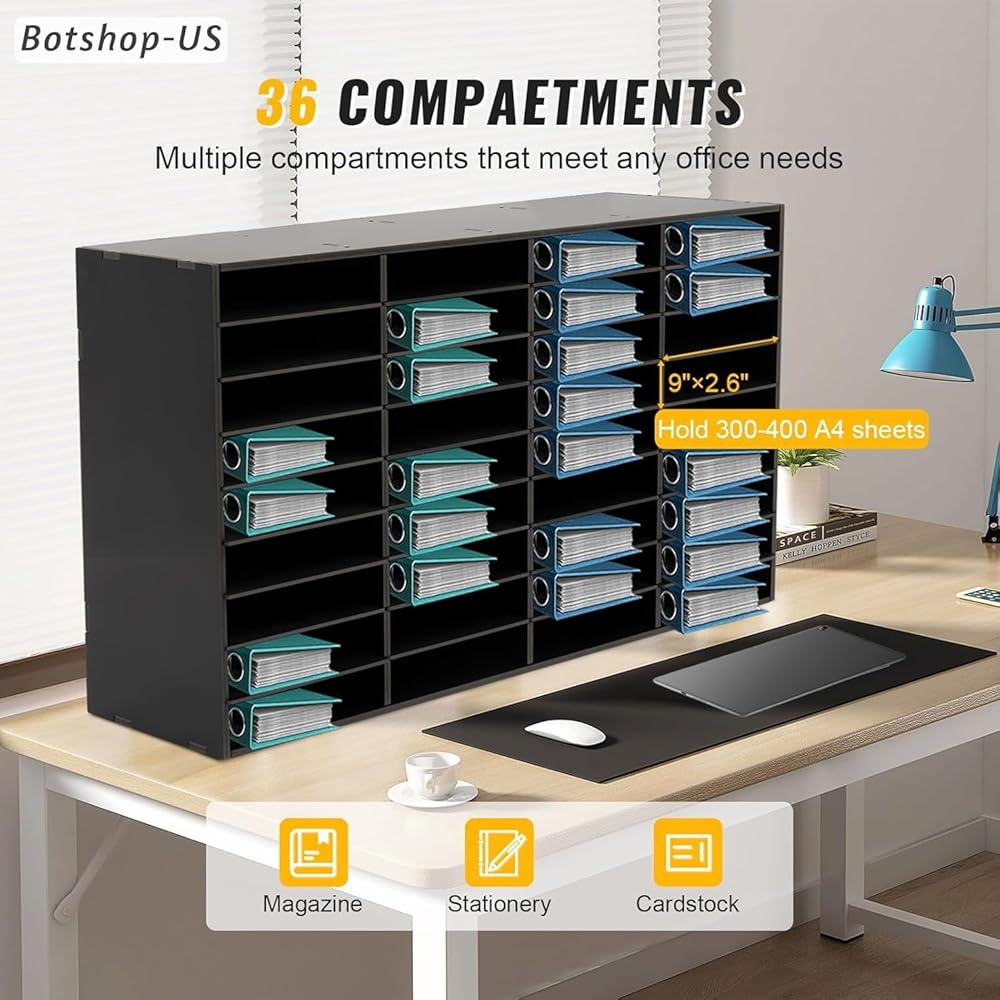 ✅[سعة كبيرة]: 36 حجرة بمقاس 9.3 بوصة × 2.4 بوصة يمكن أن توفر مساحة تصنيف كافية لك لتخزين الملفات أو الكتيبات أو الكتب، مما يسمح لك بتنظيم مستندات مكتبك، مما يجعلها سهلة البحث والوصول إليها. بالإضافة إلى ذلك، يسمح لك سطح المكتب الواسع بوضع النباتات والأكواب والديكورات وما إلى ذلك، مما يجعل مكتبك أكثر ترتيبًا وتنظيمًا.