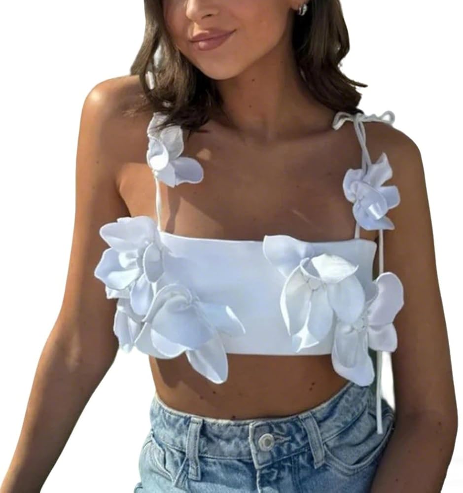 المرأة مثير أنبوب أعلى 3D الزهور السباغيتي الأشرطة المحاصيل بروتيل الصيف عارضة العصابة أعلى in Kuwait