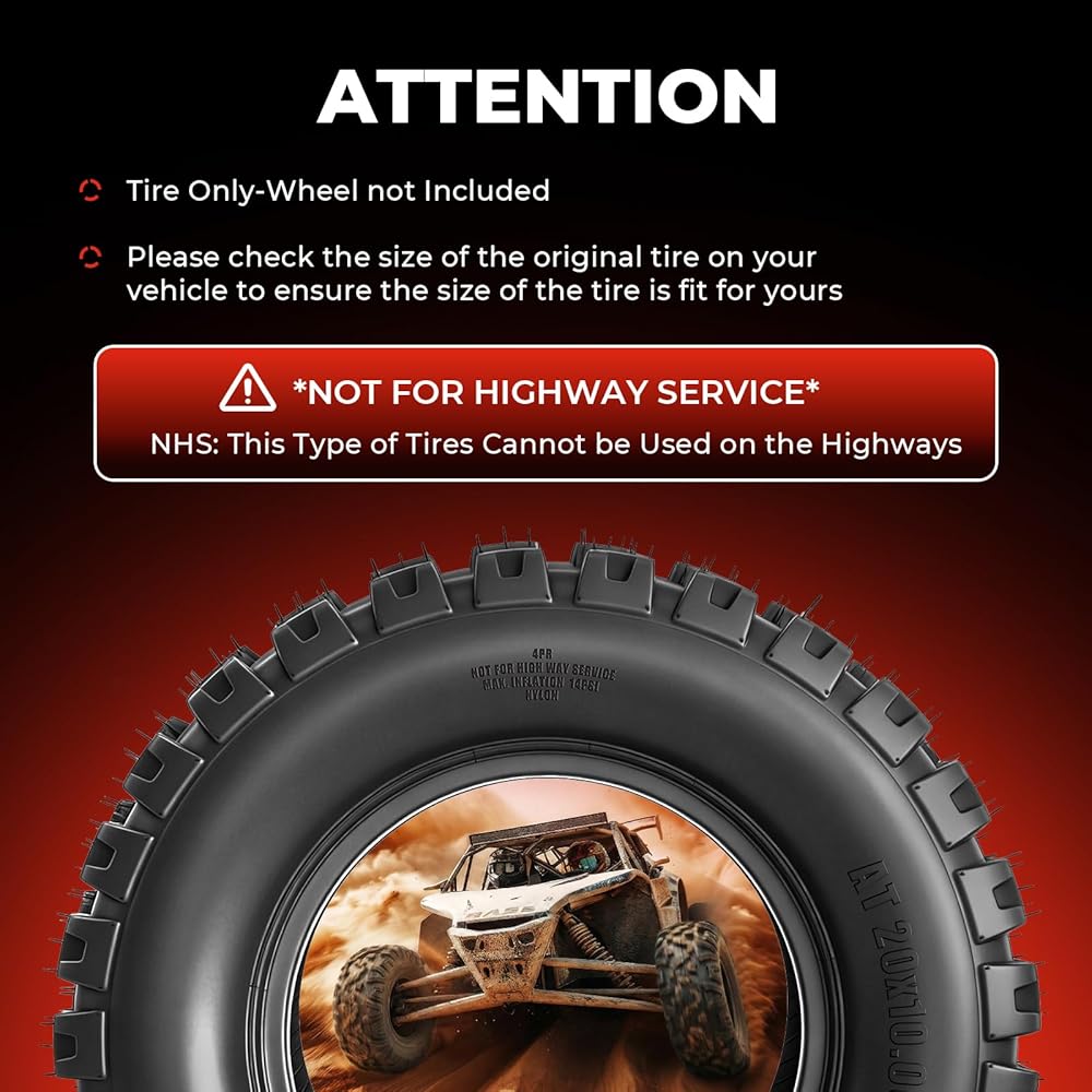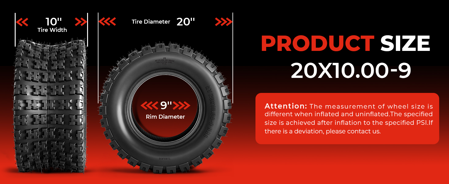 توافق واسع للمركبة: يناسب مواصفات الحجم 20x10-9 (20x10x9) وإطارات 9 بوصة؛ مناسبة لمعظم موديلات ATV وUTV، بالإضافة إلى جزازات العشب والمركبات المساعدة. غير مخصصة للاستخدام على الطرق السريعة.