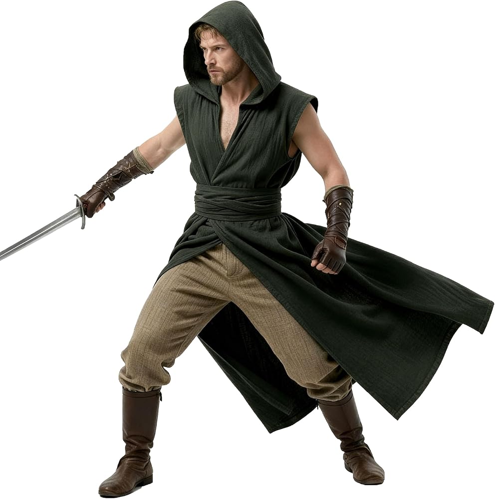 تبدأ القصة: قم بتمثيل شخصيتك المفضلة: الحارس أو الكاهن أو البطل القوطي أو القاتل أو الساحر في معارض عصر النهضة أو أحداث LARP أو العروض المسرحية أو حفلات الهالوين أو جلسات التصوير الخيالية. ارتدي ملابس SCA منفردة من العصور الوسطى أو ضعي طبقة من معطف ren faire الخاص بك فوق ملابسك لمزيد من الأناقة. يُشكل هدية مثالية للأصدقاء أو العائلة أو أي شخص يحب لمسة من الخيال.