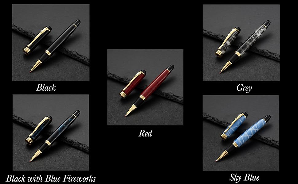 【5 خيارات ألوان أنيقة】 اختر من بين الأسود والأحمر والأزرق السماوي والرمادي والأسود مع الألعاب النارية الزرقاء - قلم متعدد الاستخدامات ورائع مناسب لكل من الرجال والنساء.