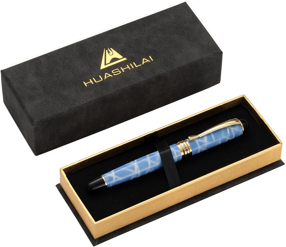 【مجموعة كاملة جاهزة للهدايا】 تتضمن قلمًا واحدًا، وعبوتين حبر أسود، وصندوق هدايا HUASHILAI الأنيق - مثالي كهدية للشركات، أو هدية مكتب للرجال، أو مجموعة قرطاسية فاخرة.