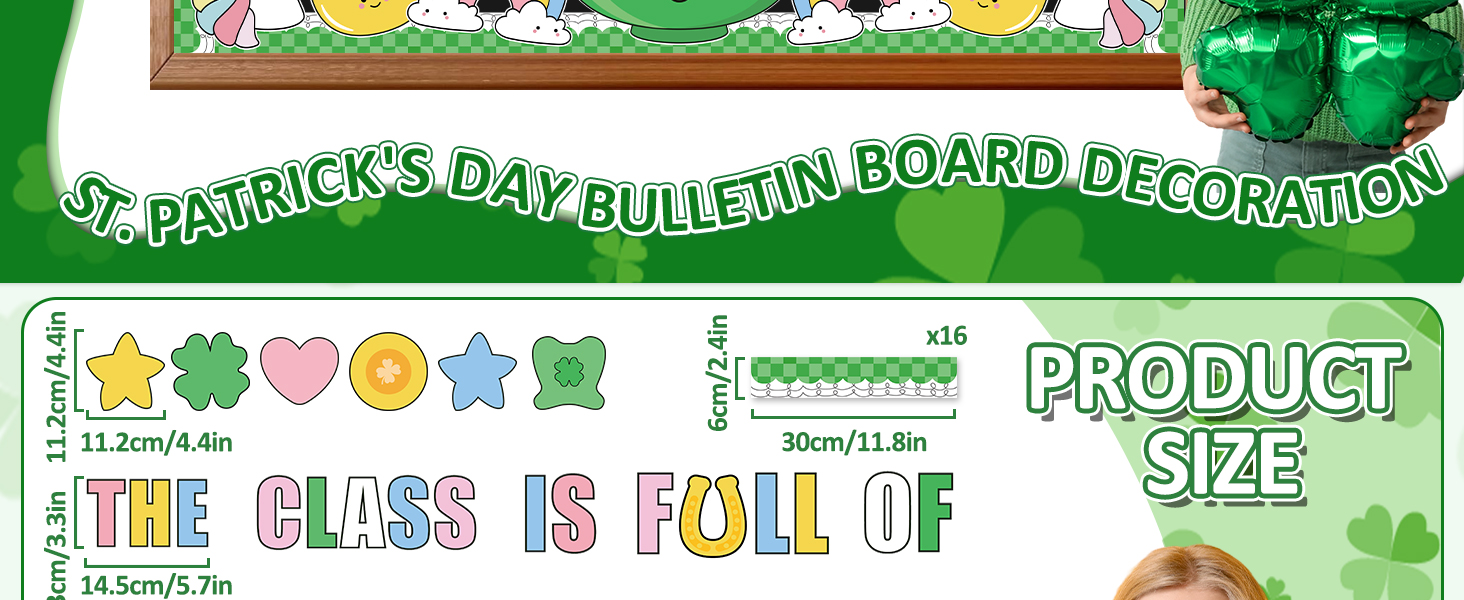 مجموعة لوحة إعلانات كاملة: يتضمن ديكور لوحة إعلانات عيد القديس باتريك 47 قطعة مع لافتات حروف حدودية وعناصر يوم القديس باتريك مما يسمح للمدرسين بإنهاء إعداد لوحة إعلانات الفصل الدراسي بالكامل بسرعة وبشكل أنيق لعرض العطلات.