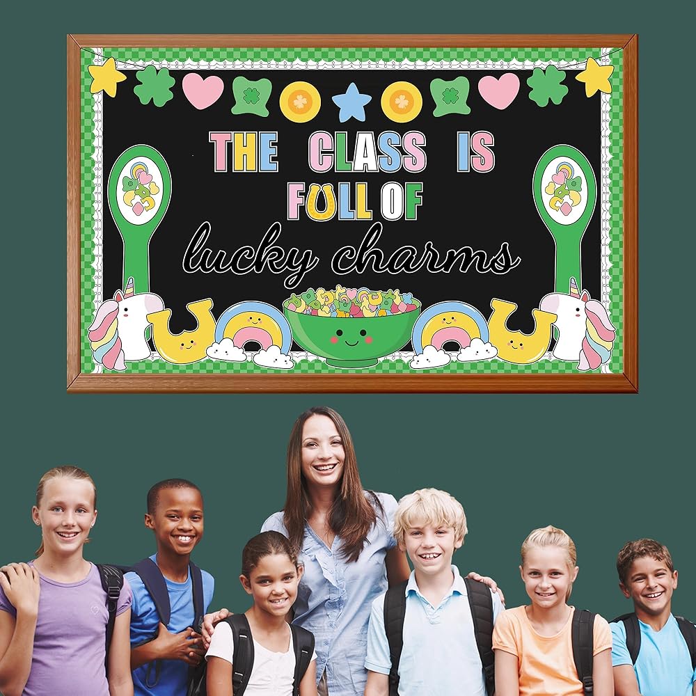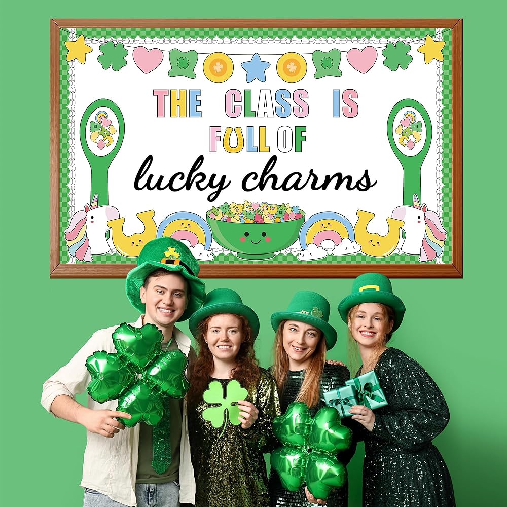 ديكور متعدد المشاهد: مثالية لجدار باب الفصل الدراسي أو ديكور المنزل أو ديكور العطلات، تعمل مجموعة لوحة الإعلانات Green Lucky Shamrock بشكل جيد في فصول رياض الأطفال في مرحلة ما قبل المدرسة والحفلات والمكاتب ومساحات التعلم الموسمية.
