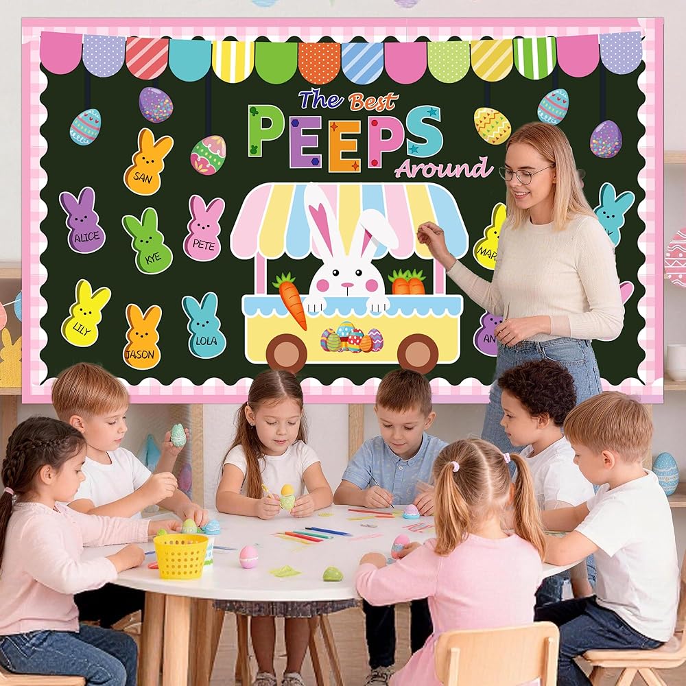 • تصميم ممتاز: تتميز مجموعة لوحة إعلانات عيد الفصح الخاصة بنا بموضوع أفضل اللمحات التي تتضمن عناصر عيد الفصح الكلاسيكية، واللمحات اللطيفة، وبيض عيد الفصح، والجزر، والأرانب، وشاحنة الطعام ستجلب جوًا مبهجًا لعيد الفصح، و"أفضل اللمحات حولها"، وشاحنة الطعام الكبيرة والأرنب ستجعل الطلاب يهتفون ويضحكون، ويمكن أيضًا كتابة أسمائك، دع زقزقة عيد الفصح مليئة بالمرح والحيوية