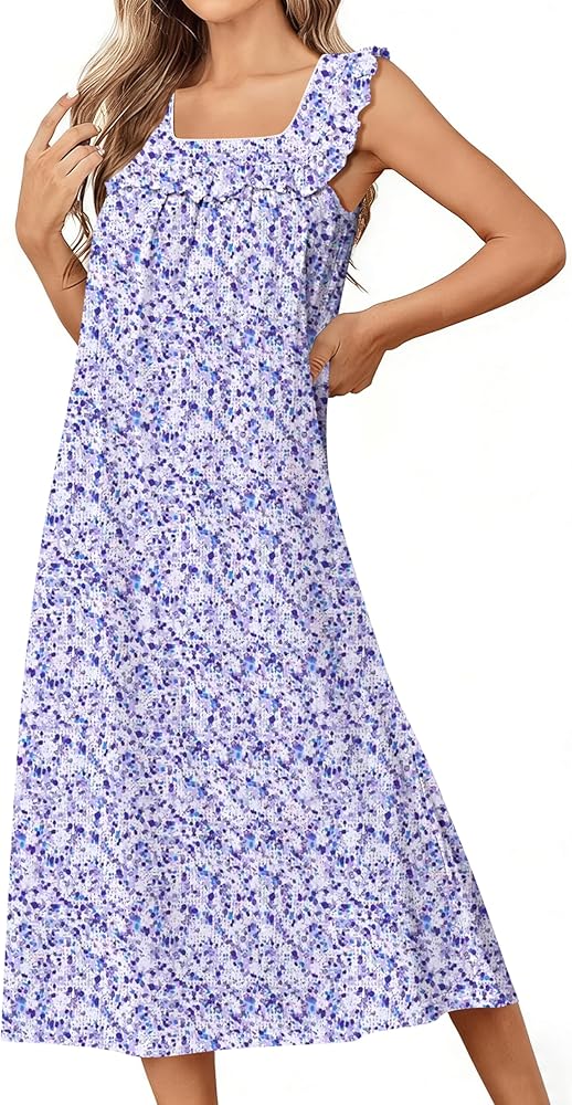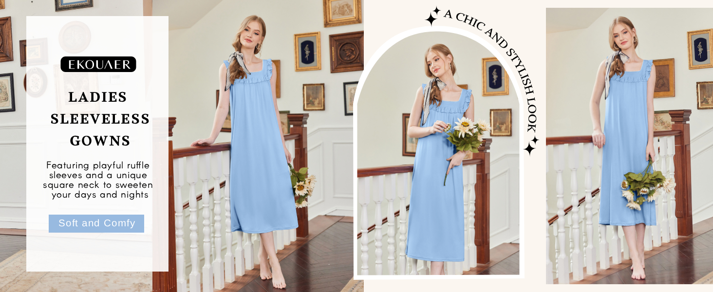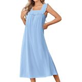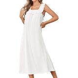 فساتين نوم قطنية من Ekouaer للنساء فستان نوم طويل بدون أكمام على الطراز الفيكتوري، فستان نوم ناعم للسيدات، ملابس نوم in Kuwait