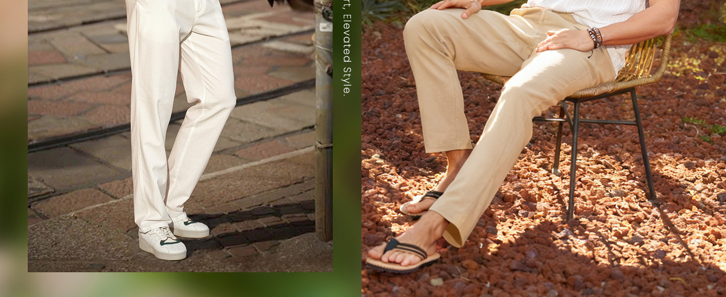تصميم متعدد الاستخدامات: سواء كان مع تي شيرت أو قميص بأزرار سفلية، فإن هذه السراويل المصنوعة من الكتان توفر مظهرًا كاجوال ولكن أنيقًا يعمل دون عناء في النزهات المريحة وأيام التنقل على حد سواء.