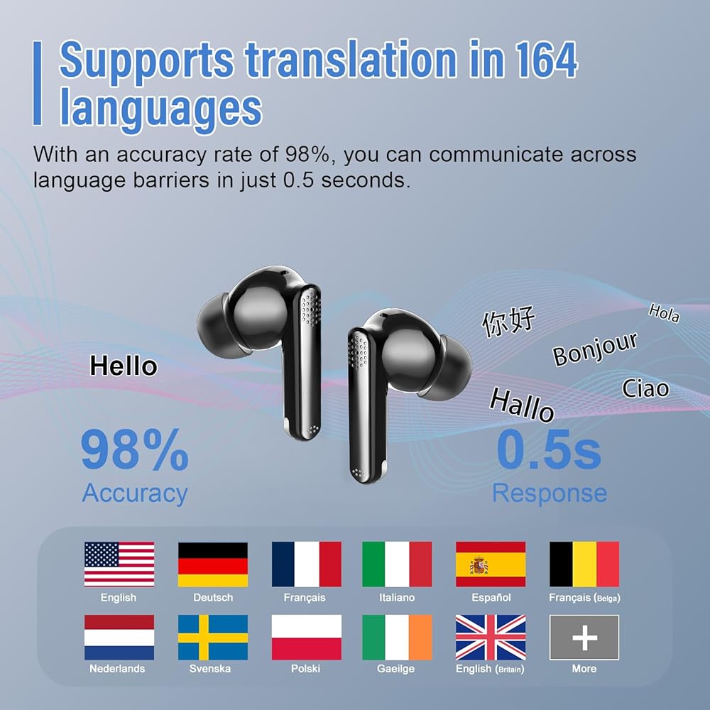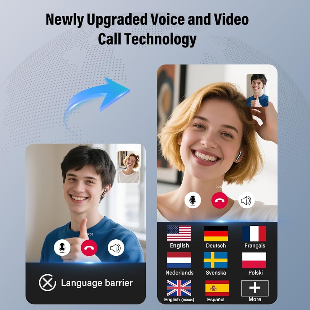 ترجمة مكالمات الصوت والفيديو: تتميز سماعات الأذن المترجمة لدينا بتقنية ترجمة مكالمات الصوت والفيديو المتقدمة لتحويل اللغة في الوقت الفعلي، مما يتيح التواصل السلس بين اللغات. سواء كنت تتفاعل مع عملاء عالميين في مؤتمر دولي أو تجري محادثة فيديو مع أصدقاء في الخارج، فإن سماعات الأذن هذه تزيل حواجز اللغة على الفور. استمتع بمحادثات سلسة وفعالة لتعزيز إنتاجية العمل والتواصل الاجتماعي