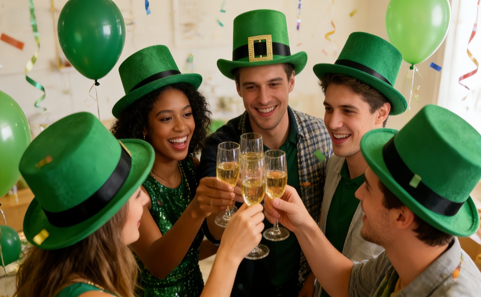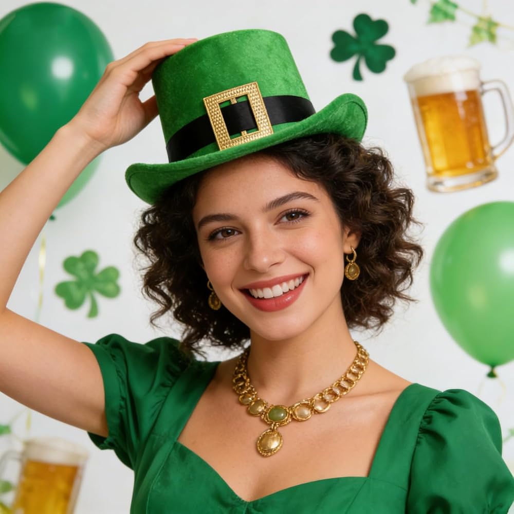 قبعة عيد القديس باتريك السعيد: القبعات الأيرلندية الخضراء هي إكسسوار جميل للأزياء. في أيرلندا، يمثل اللون الأخضر السعادة والأمل. مثالية للاستعراضات والحفلات والمناسبات التنكرية أو ببساطة إضافة لمسة من السحر الأيرلندي إلى ملابسك اليومية؛ قم بتحويل احتفالات عيد القديس باتريك الخاصة بك من تقليدية إلى لا تُنسى مع قبعتنا العلوية ذات التصميم الجني، والتي تم تصميمها لتضفي الفرح والأناقة أينما قررت ارتدائها.