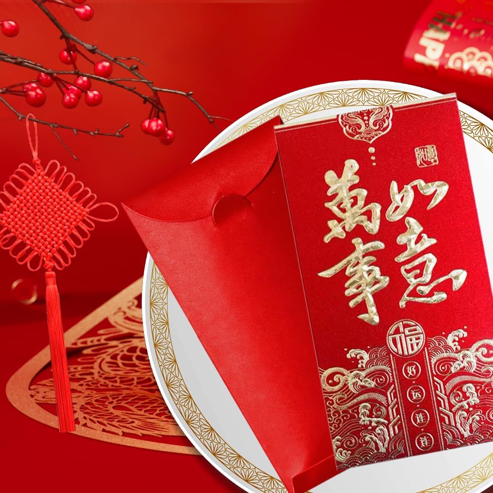 مجموعة المظروف الأحمر المناسبة للعام الصيني الجديد: تصميم المظروف الأحمر الصيني الخاص بنا يتماشى تمامًا مع أجواء العام الصيني الجديد. وفي الوقت نفسه، يتميز تصميم الظرف الأحمر بأنه أنيق للغاية ومليء بالفخامة، مما يجعله هدية مثالية لزيارة الأصدقاء والعائلة الصينية خلال فترة رأس السنة الصينية