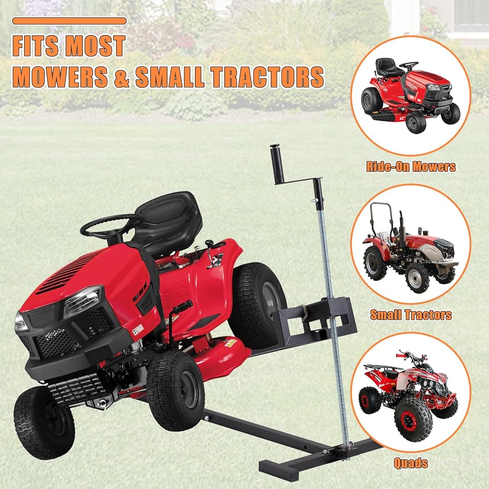 هيكل متين وشديد التحمل: يتميز بسعة تحميل تصل إلى 880 رطلاً، ويتعامل رفع الجزازة هذا مع الجزازات ذات الدوران الصفري، وجزازات الركوب، وجرارات الحدائق الصغيرة، والمركبات الرباعية بسهولة. تضمن وصلاتها المعززة وإطارها المستقر دعمًا آمنًا للوزن، بينما تمنع القاعدة غير القابلة للانزلاق الانزلاق أثناء الاستخدام. قفل أمان موثوق يحافظ على ثبات المصعد في موضعه أثناء العمل، ويضمن الطلاء المقاوم للصدأ أداءً طويل الأمد حتى في الهواء الطلق.