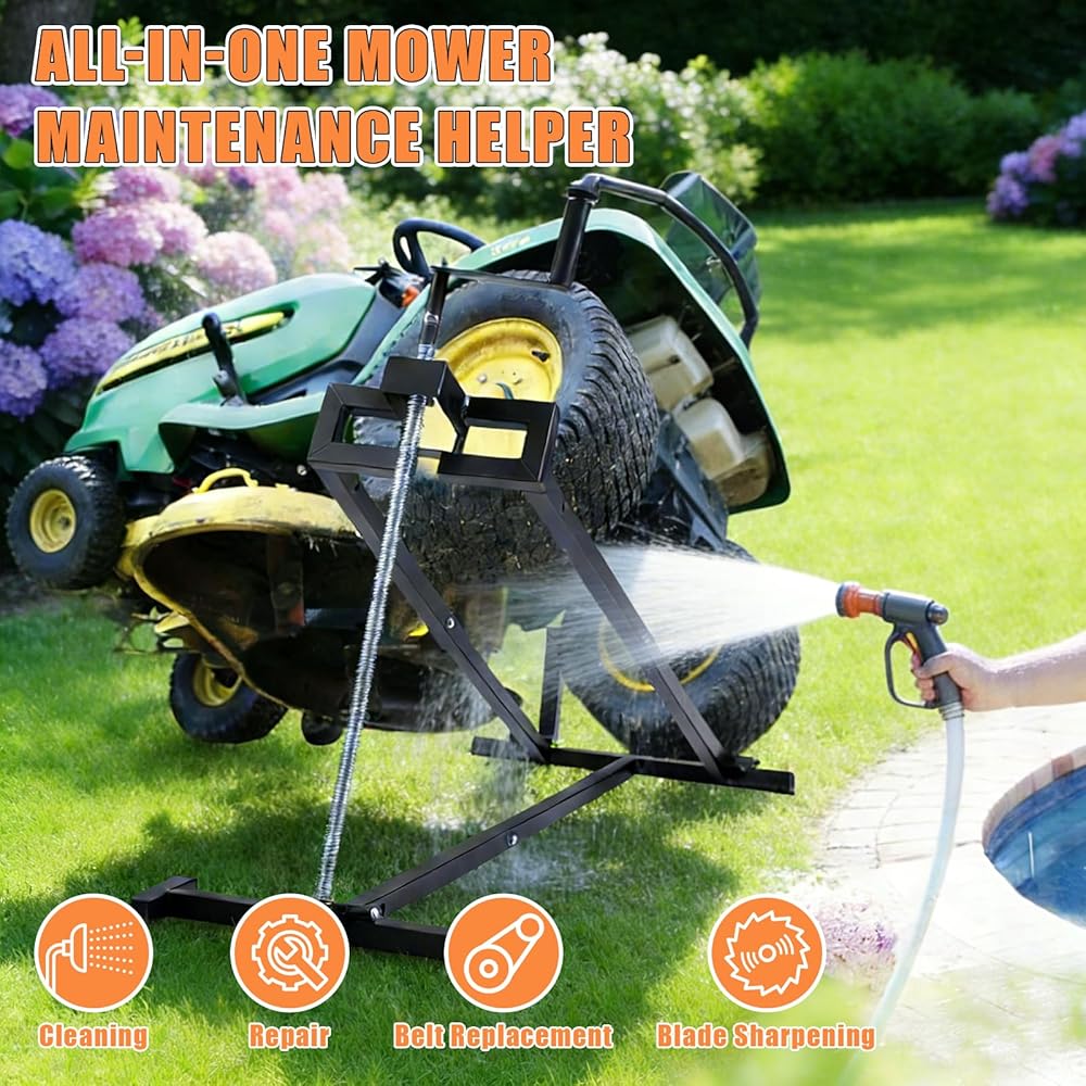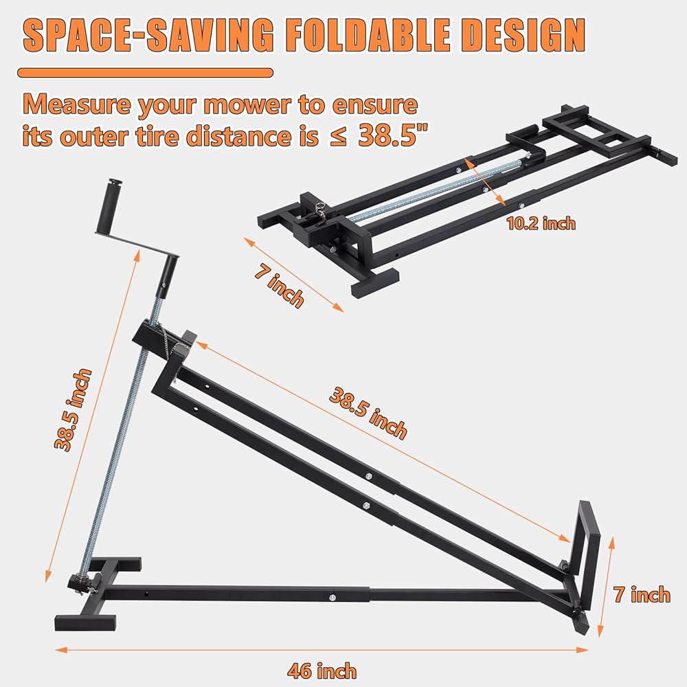 التجميع والتشغيل بدون متاعب: لا حاجة إلى أدوات إضافية أو مهارات احترافية: تأكد من الملاءمة عن طريق التحقق من مسافة الإطار الخارجي لجزازتك ≥ 38.5 بوصة؛ أدر ذراع التدوير في اتجاه عقارب الساعة للرفع بشكل ثابت، وعكس اتجاه عقارب الساعة للخفض بسلاسة. احصل على جزازة العشب الخاصة بك جاهزة في دقائق وابدأ في صيانة المعدات الخالية من الإجهاد بثقة سواء كنت محترفًا متمرسًا أو محترفًا في الأعمال اليدوية لأول مرة