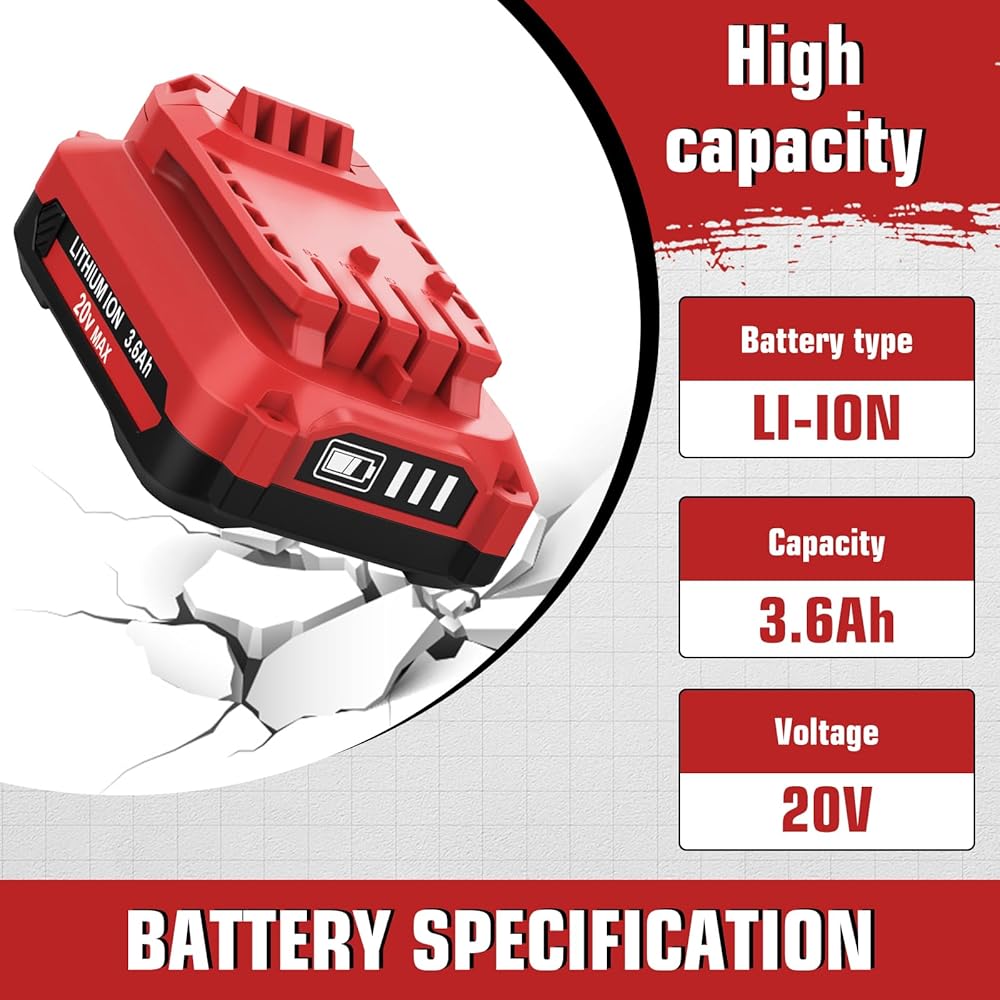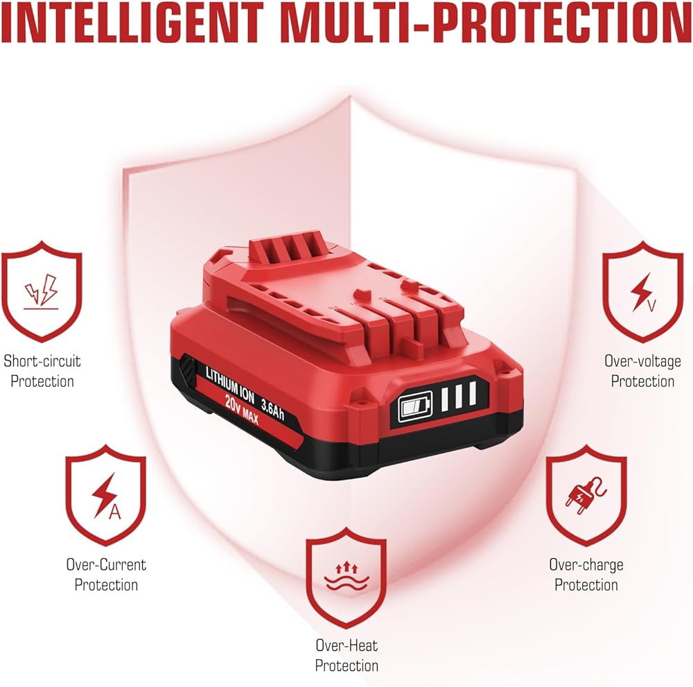 • استبدال لكابل بورتر بطارية ليثيوم 20 فولت PCC680LP PCC682L PCC680L PCC681L PCC685L PCC685LP؛ متوافق مع أدوات الطاقة اللاسلكية بكابل Porter 20 فولت ويناسب شاحن بطارية Porter-Cable 20V PCC692L, PCC691