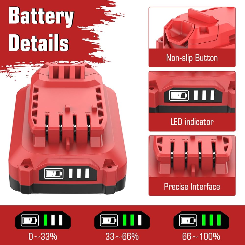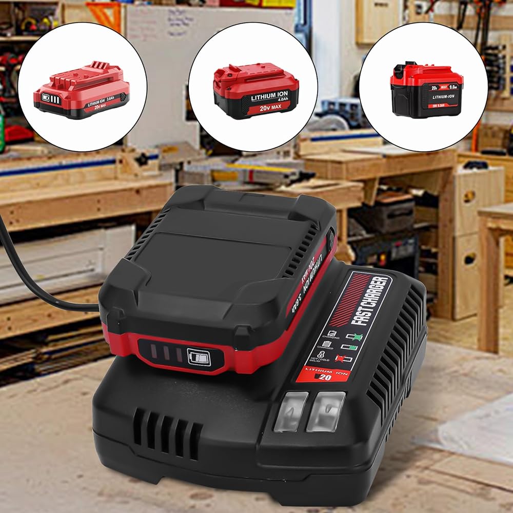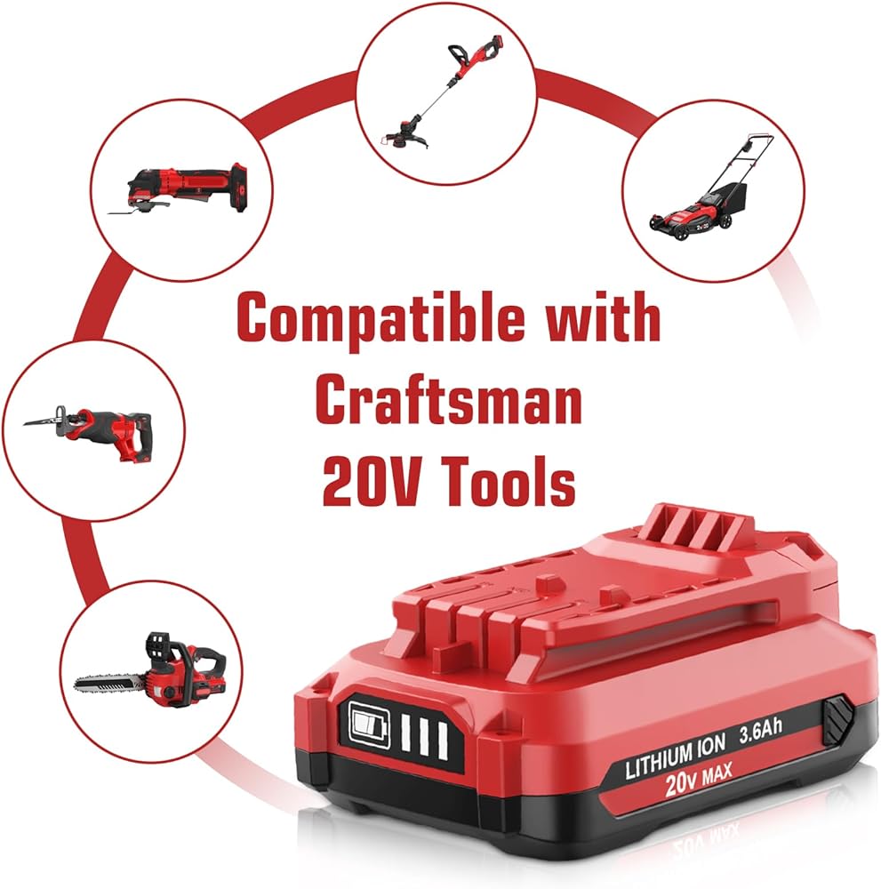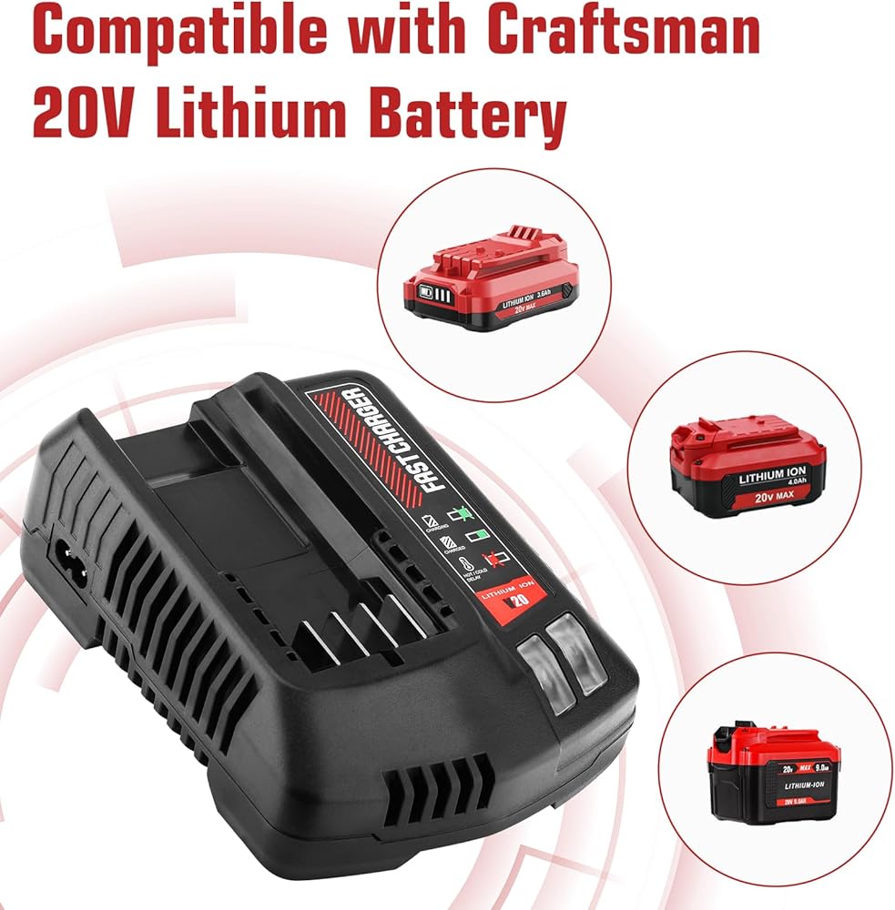 2pack 20v 3000mah CMCB202 استبدال Craftsman 20V البطارية أيون و Charger Kit متوافقة مع Craftsman V20 CMCB202 CMCB202-2 CMCB204 CMCB204-2 CMCB201 CMCB206 CMCB209 (Red)