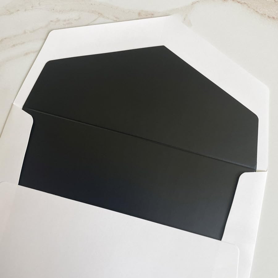 - 25 بطاقة مسطحة مخصصة بحبر بارز وإطار أسود مع 25 ظرفًا فارغًا مطابقًا