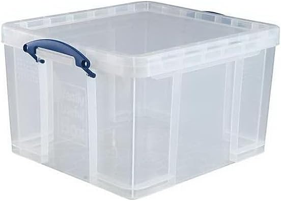 42L clear 100% recyclable Really Useful plastic storage box for bedroom, office, garage or playroom.