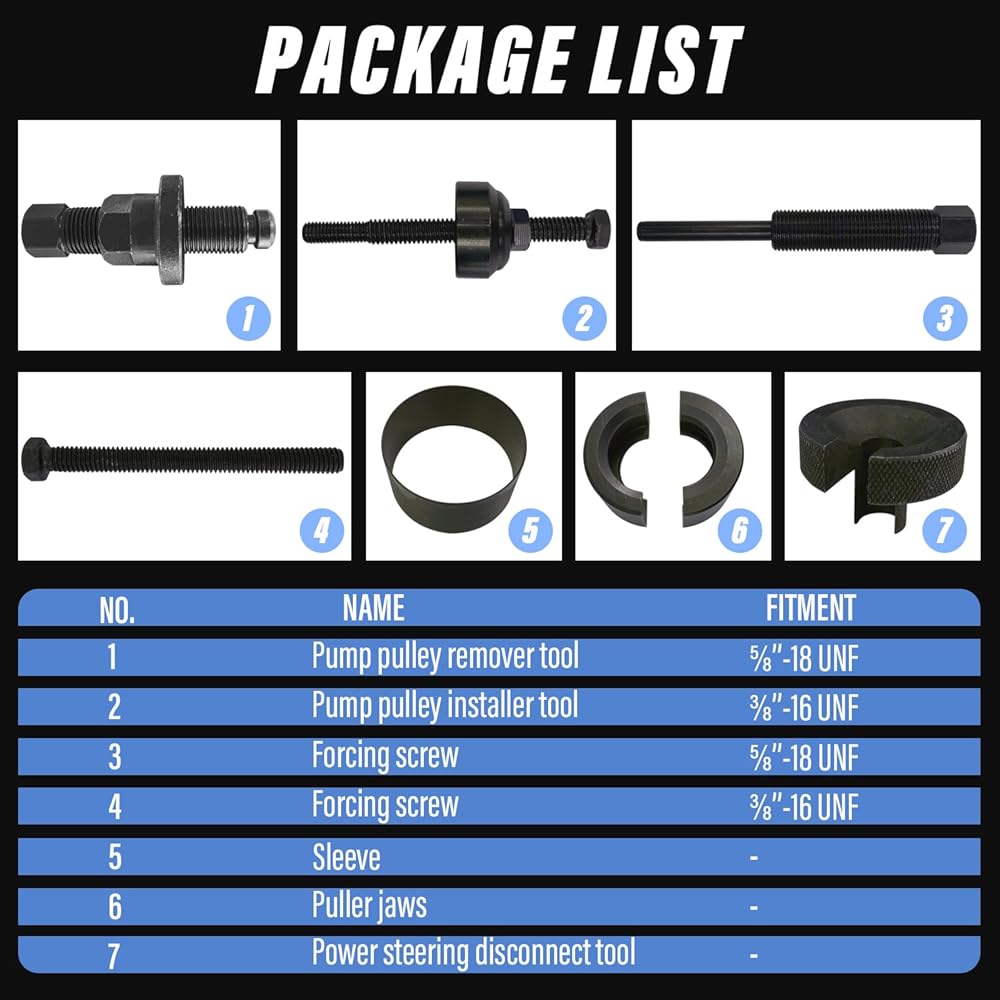 مجموعة أدوات تثبيت بكرة مضخة التوجيه الكهربائية، مجموعة أدوات تثبيت مزيل السحب المتوافقة مع سيارات Ford وGM وChrysler - أزرق