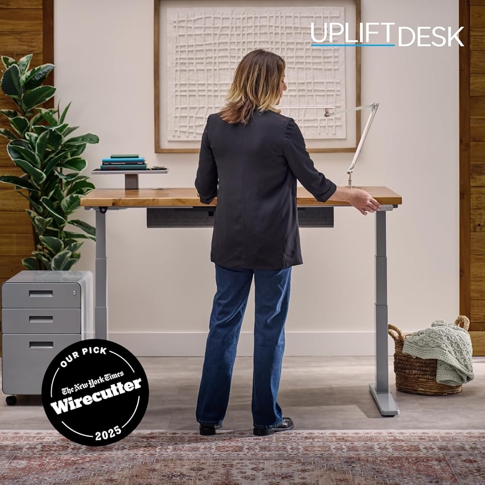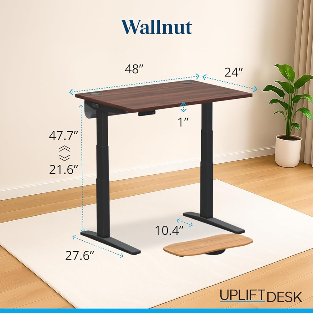 UPLIFTDESK V3 مكتب قائم من خشب الجوز المصقول ذو ساقين - ارتفاع قابل للتعديل، لوحة مفاتيح ذاكرة متقدمة بلمسة واحدة، إدارة الكابلات تحت المكتب، حلقات الأسلاك ولوحة الروك (إطار C أسود، 60 × 30 بوصة)
