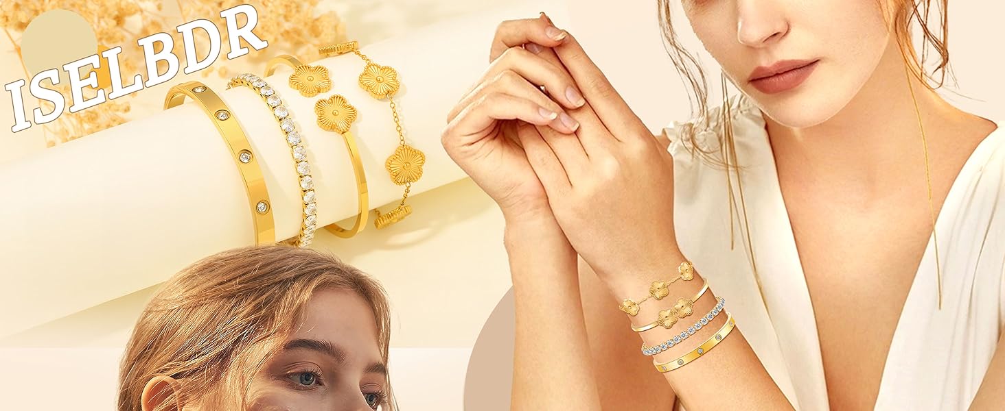 • 🍀Material: These gold bangles are made from high-quality 316L stainless steel, free of lead and nickel, and feature luxurious 18k gold plating. Their hypoallergenic properties ensure safe everyday wear, and their durability and resistance to fading make them an ideal choice for women seeking stylish and personalized jewelry.