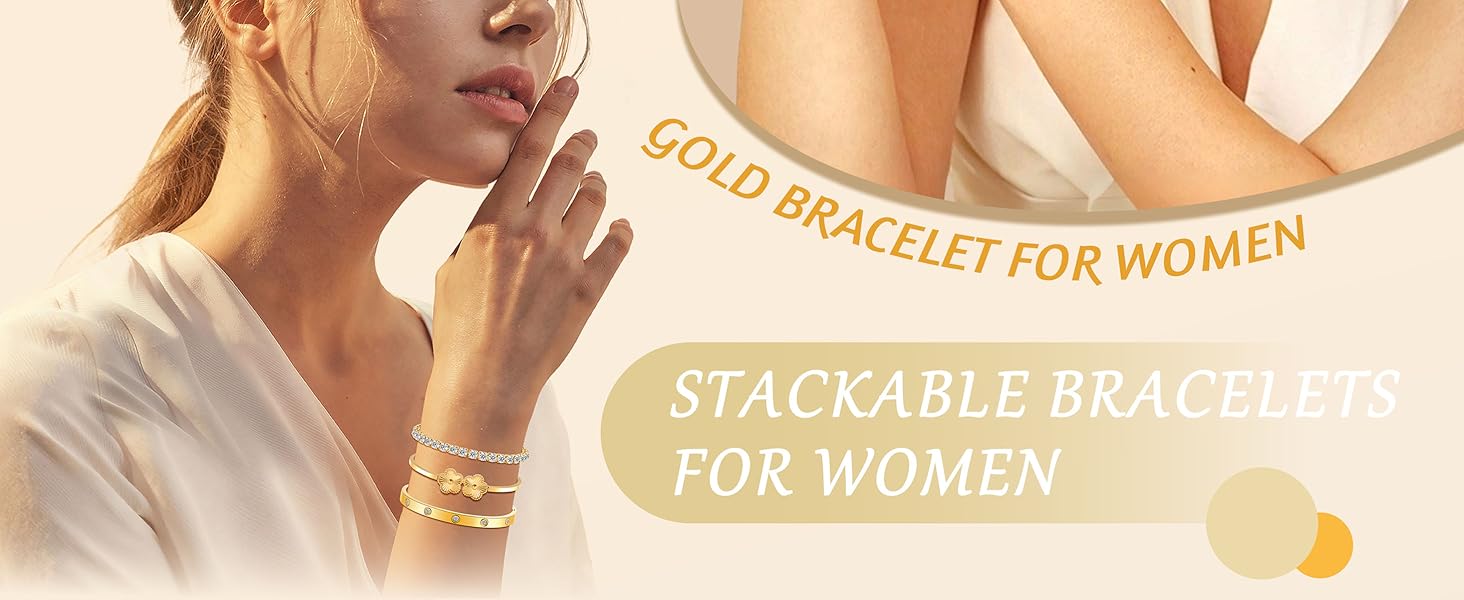 • 🍀Gift Ready: This stack of gold bracelets is the perfect gold jewelry set choice for women for birthdays, anniversaries, and other special occasions.