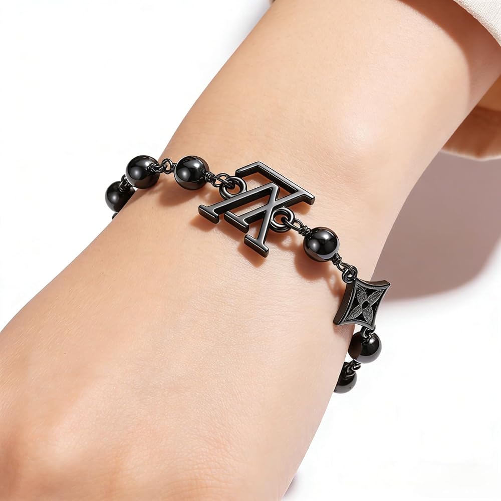 Make a bold fashion statement with this striking gunmetal black patterned beaded chain bracelet. Crafted from premium stainless steel, this versatile accessory features an eye-catching design that combines sleek metallic beads with distinctive geometric and stylized motifs throughout the chain. The adjustable length ensures a perfect fit for any wrist size, while the durable stainless steel construction promises long-lasting wear and tarnish resistance. The sophisticated dark finish adds an edgy yet elegant touch, making it suitable for both casual and formal occasions. This unisex bracelet serves as a perfect accessory for layering with other jewelry pieces or wearing as a standalone statement piece. The secure closure system keeps the bracelet firmly in place while you go about your day. Whether you're dressing up for a special event or adding some flair to your everyday style, this bracelet delivers both fashion and functionality in one stunning package.