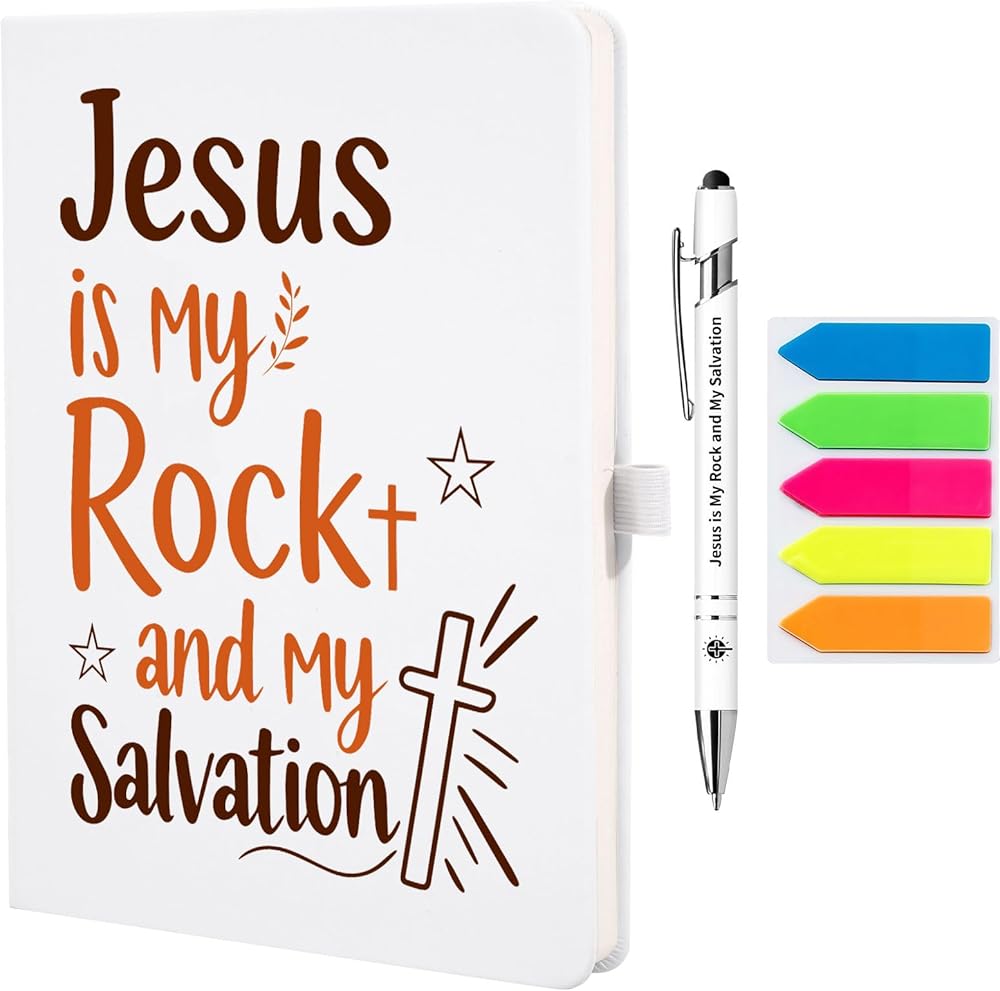 Bible Journal with Pens & Sticky Notes: Featuring a stylish, pre-printed cover, this bible notebook set adds a touch of sophistication to your daily writing. A5-sized notebook with 1 free bible design pens & sticky notes, 8.3 x 5.8 inches, with 192 pages.