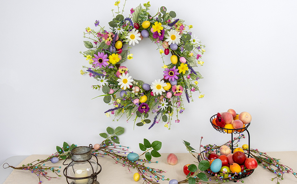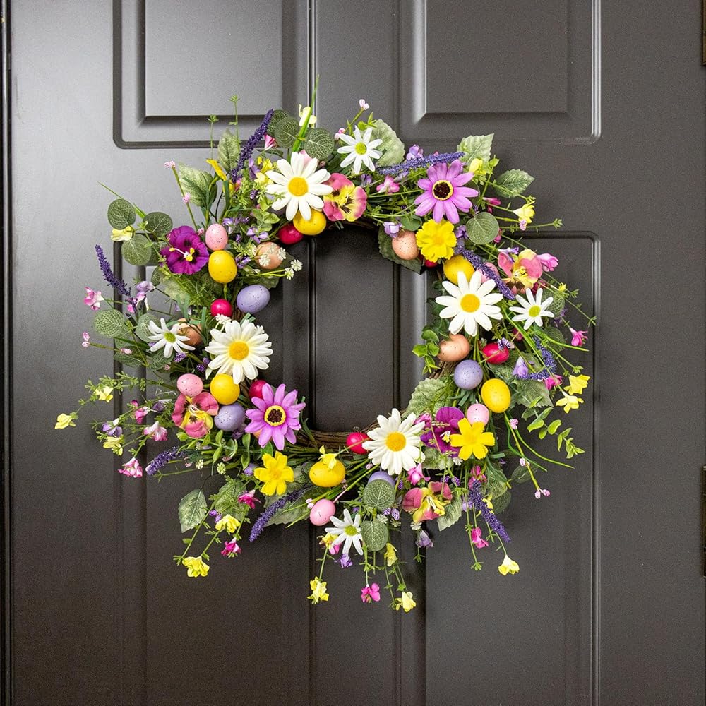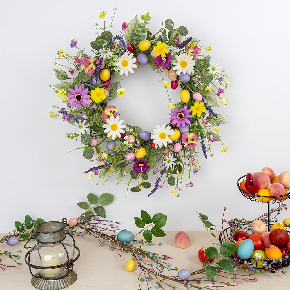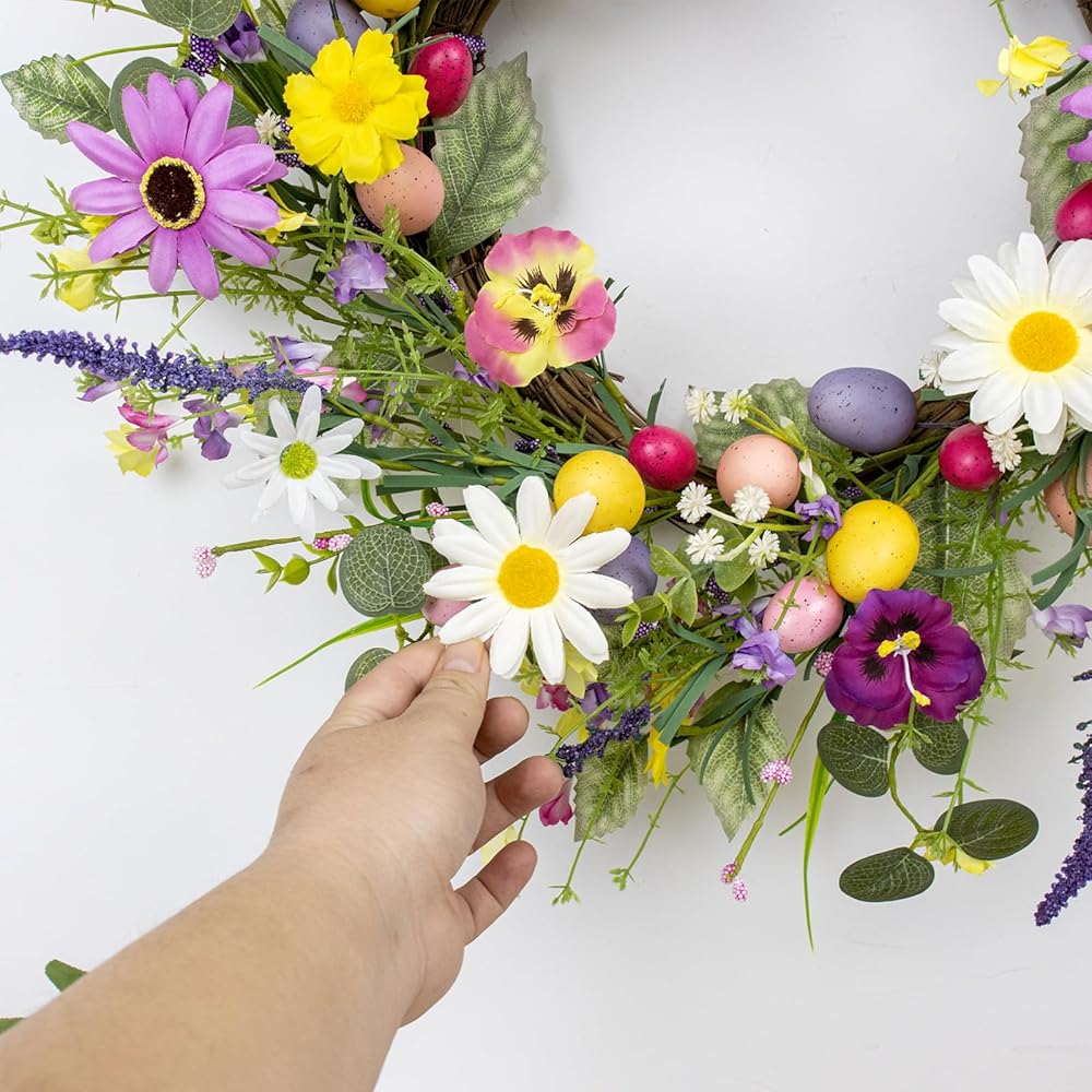 صُنع من أجل المتانة والتأثير: مثل نظيره الربيعي، تم بناء إكليل عيد الفصح هذا على قاعدة عنب طبيعية متينة مع زهور حريرية عالية الجودة وأوراق شجر واقعية. يتم تثبيت بيض عيد الفصح الإضافي بشكل آمن، مما يضمن عرض كامل وجميل ومتين سنة بعد عام.