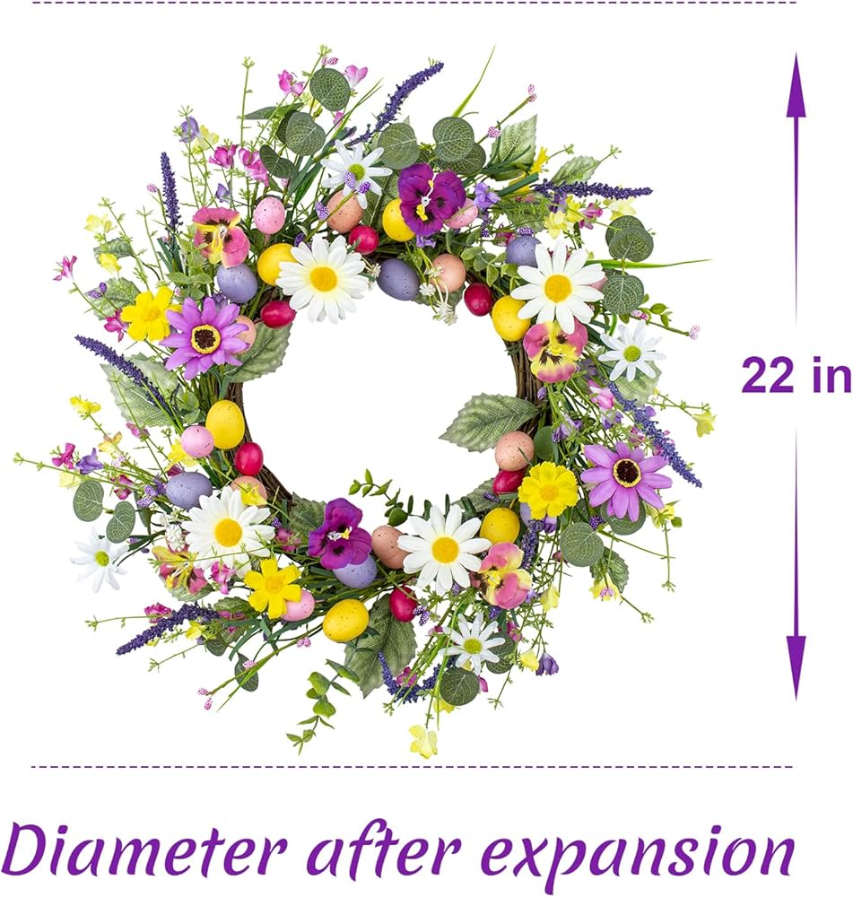 احتفال عيد الفصح الاحتفالي: يعتمد إكليل عيد الفصح الساحر مقاس 55.88 سم على أساس ربيعي غني من خلال إضافة مجموعة مرحة من بيض عيد الفصح متعدد الألوان، مما يخلق قطعة زخرفية مثالية مخصصة للاحتفال بفرحة وتجديد موسم عيد الفصح.