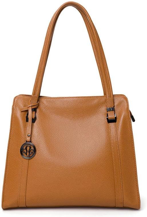 Premium Material & Exquisite Craftsmanship Crafted from high - quality cowhide, this handbag boasts a luxurious texture that not only feels great but also exudes an air of sophistication. The meticulous stitching and attention to detail in every part, from the portable straps to the hardware, ensure durability and a premium look. Whether you're heading to the office or a night out, it adds a touch of elegance to your ensemble. Thoughtful Design Elements Notice the well - designed details! The smooth - gliding zipper keeps your belongings secure, while the sturdy rivets and stylish hardware enhance both functionality and aesthetics. The portable straps are comfortable to hold, making it easy to carry around all day. It's a perfect blend of fashion and practicality, designed to meet your daily needs. Spacious & Organized Interior Open it up, and you'll be amazed by the well - structured interior. With multiple compartments including main pockets, zipper pouches, and a rear zipper bag, it offers ample space to organize your essentials. Keys, phone, wallet, cosmetics – everything has its own place, saving you from the hassle of rummaging through a messy bag. Perfect Size & Color Measuring 33cm (12.99in) in length, 28cm (11.02in) in height, and 12cm (4.72in) in width, this yellowish - brown handbag is just the right size – not too big to be cumbersome, nor too small to hold your necessities. The versatile color complements a wide range of outfits, making it a must - have staple in your wardrobe. Lightweight for Easy Carrying Weighing only 0.825kg, it's lightweight despite its roomy interior. You can carry it around effortlessly, whether you're commuting, shopping, or traveling. No more shoulder strain, just a stylish and convenient companion for all your adventures.