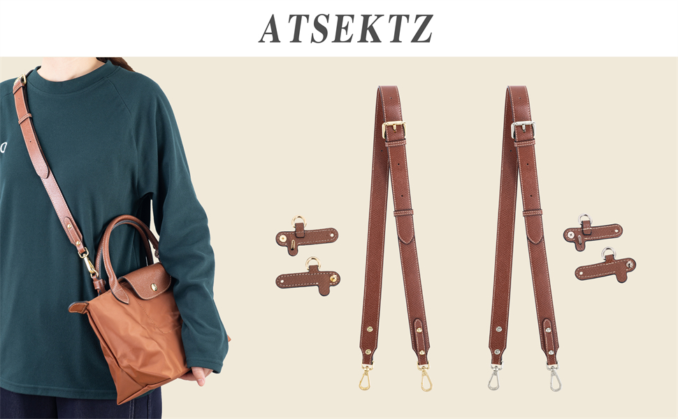 Upgrade your bag with the ATSEKTZ leather crossbody strap conversion kit, designed for an easy, no-damage modification. Made from full-grain cowhide leather, it offers better durability, texture, and longevity than PU or synthetic straps. The adjustable strap length allows flexible styling for crossbody or shoulder wear. Upgraded metal hardware ensures a secure fit that won't shift or loosen during daily use. The carefully matched brown leather and gold hardware closely resemble the original handle color, creating a seamless, polished look. A practical and stylish upgrade for everyday use.