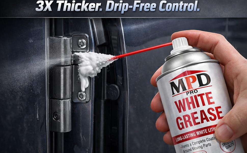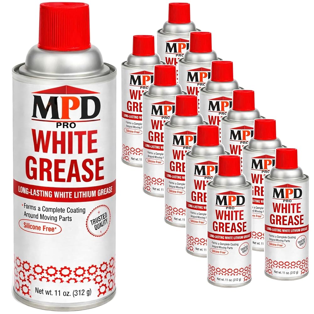 بخاخ شحم الليثيوم الأبيض من إم بي دي برو، مادة تشحيم خالية من التنقيط من الدرجة البحرية، تركيبة عالية الصلابة غير ملطخة لأبواب المرآب والمفصلات والسلاسل واستخدام السيارات - 11 أونصة (عبوتان) in Kuwait