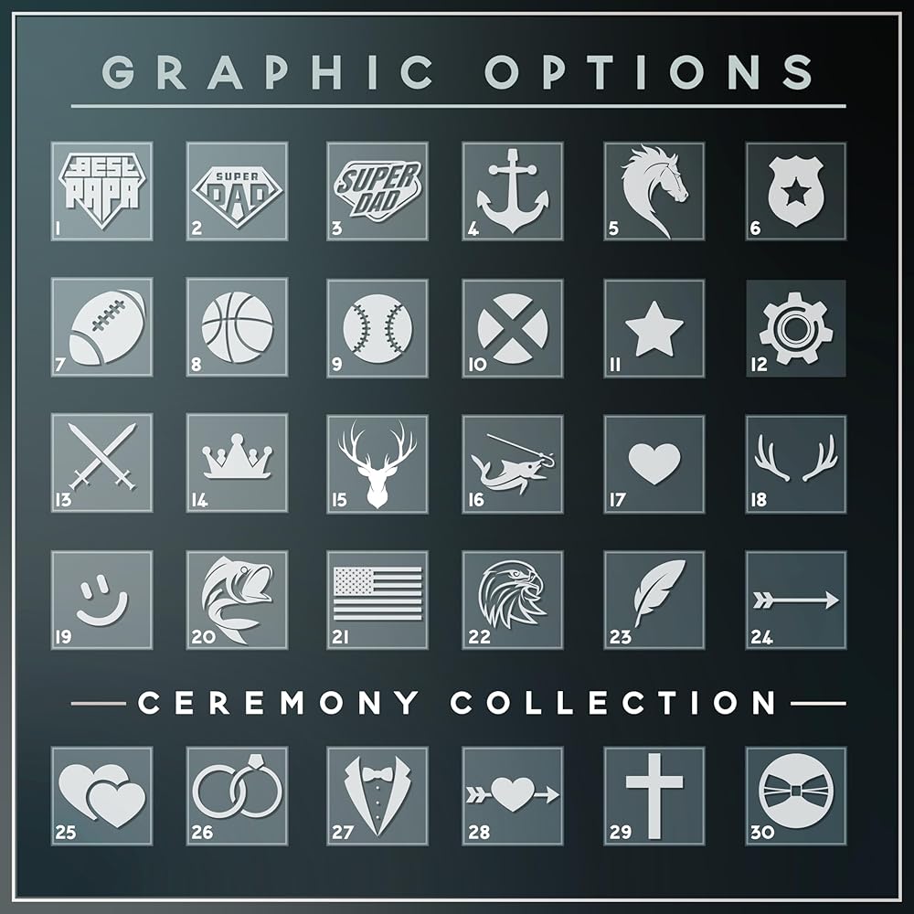 Unique Icon Selections: Enhance the uniqueness of your gift with a choice of 30 different icons, allowing for even deeper personalization. This feature makes each tie clip not just a gift, but a special keepsake that is both practical and sentimental.