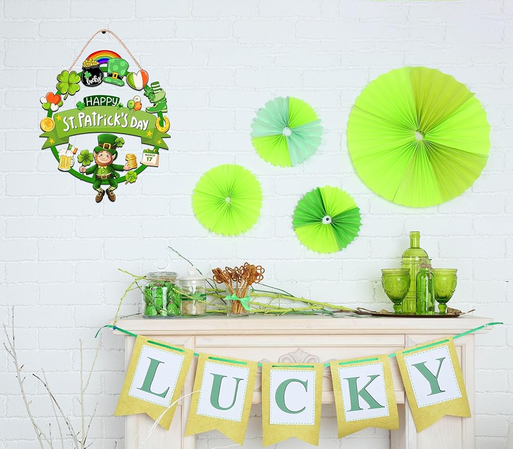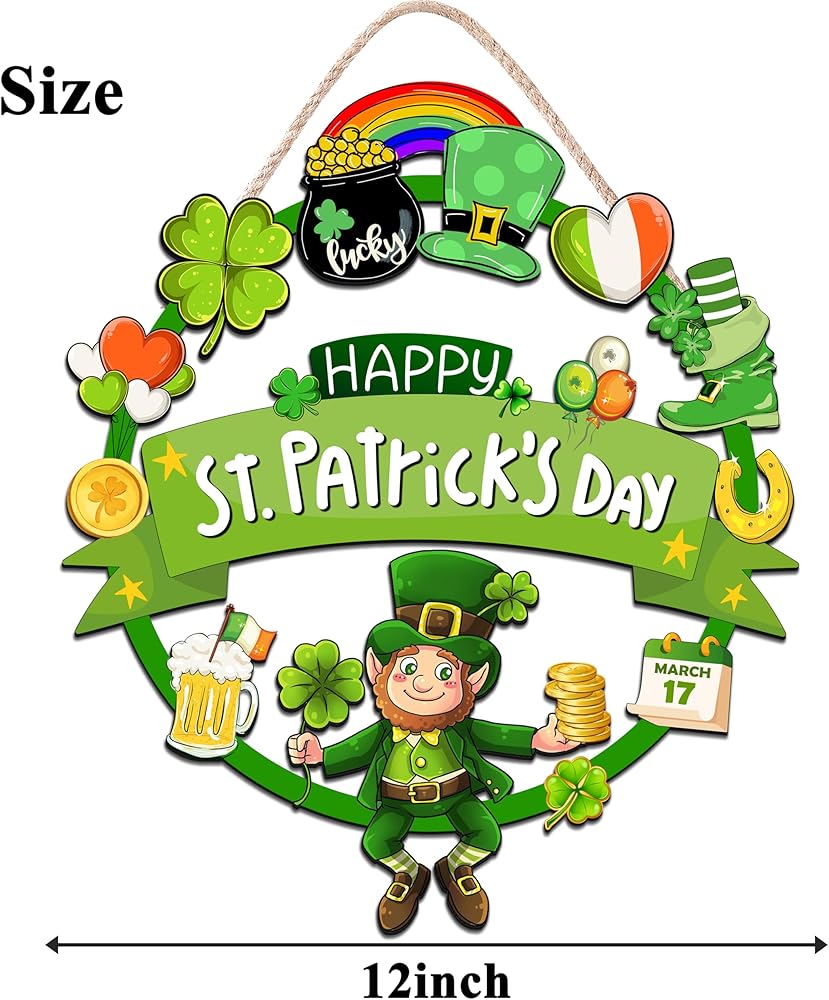 St. Patrick's Decorations: The size of St. Patrick's Day wreath is approx 12 x 12 inches, it's suitable for indoor and outdoor decoration use. Easy to hang on the wall or doorway.