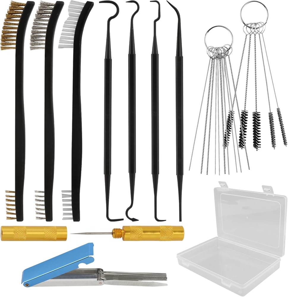 Organized Storage & Easy Access: Comes with a durable storage case that keeps all tools (1 blue box needle, 1 gold hook, 1 brush, 1 needle, 3 black-handled copper brushes, 4 double-headed hook brushes) neatly arranged. Prevents loss, facilitates quick access and easy carrying for outdoor maintenance